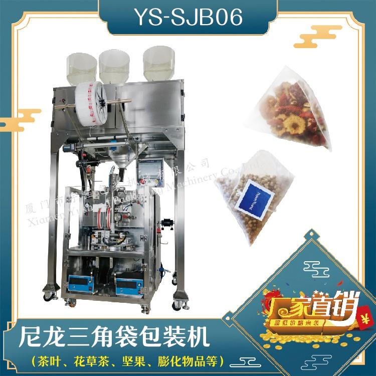 YS-SJB06尼龍三角袋包裝機(電子秤系列) 特點 1、適用于綠茶、紅茶、花茶、咖啡、中國茶、健康茶、中藥茶、顆粒等。2、可用于平面袋包裝、三角立體包裝等形式包裝袋。3、整機可自動完成上料、計量、制袋、封口、切斷、計數(shù)、成品輸送等功能。4、選用進(jìn)口超聲波封口,電子稱計量下料方式,封口牢固,下料準(zhǔn)確。5、包裝材料:…