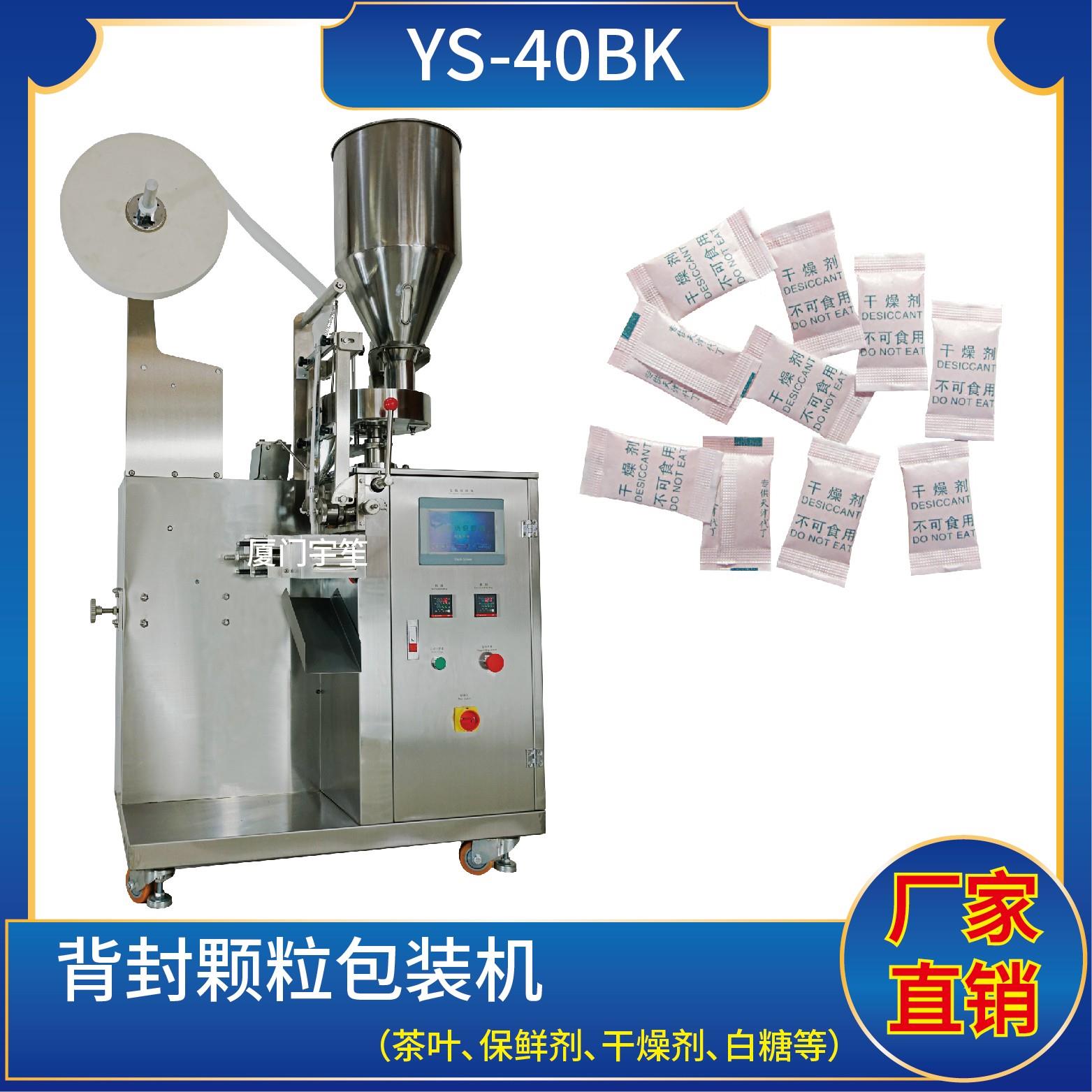 YS-40BK 顆粒自動包裝機特 點 1、適用于方便面行業湯包,干燥劑,沖劑,碎茶等小顆粒狀物品包裝。2、可自動完成制袋、計量、充填、封合、分切及計數等功能。3、包裝材料:茶葉濾紙、復合膜、無紡布。封口方式背封 技術參數計量范圍:10 - 40 g(0.6 ~ 33 ml)制袋尺寸:長 ( L ) : 40 - 110 mm 寬 …