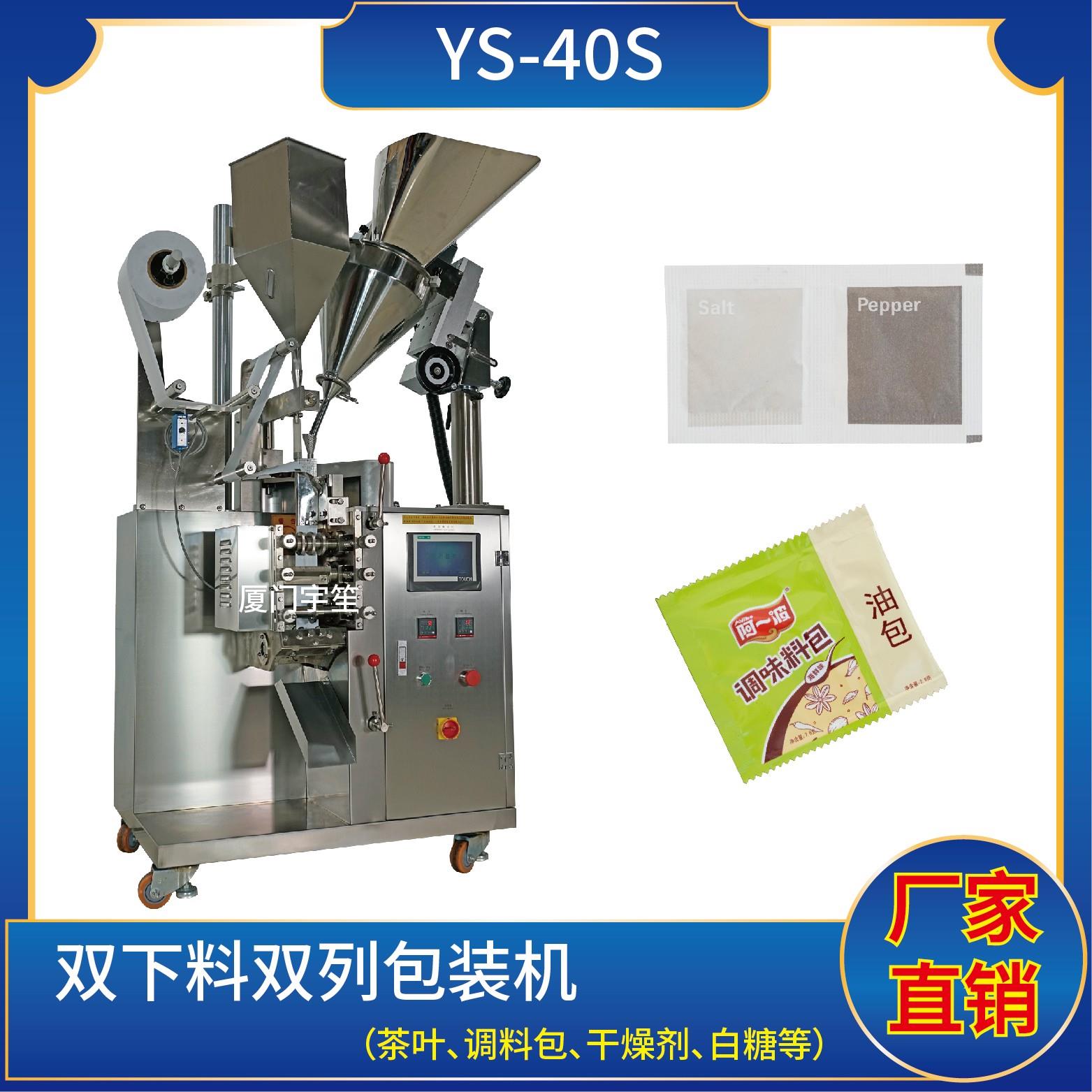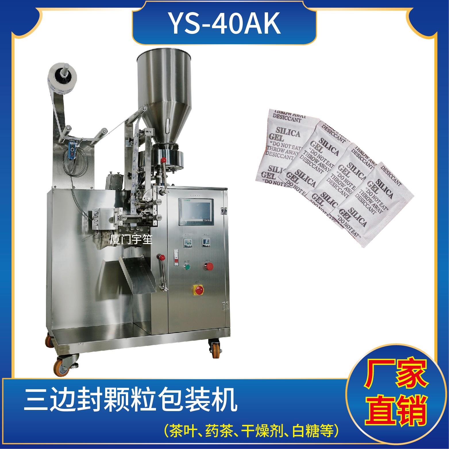 YS-40AK 三邊封顆粒自動包裝機特 點 1、適用于方便面行業(yè)湯包,干燥劑,沖劑,碎茶等小顆粒狀物品包裝。2、可自動完成制袋、計量、充填、封合、分切及計數(shù)等功能。3、包裝材料:茶葉濾紙、復(fù)合膜、無紡布。 封口方式:三邊封技術(shù)參數(shù) 計量范圍:10 - 40 g(0.6 ~ 33 ml)制袋尺寸:長 ( L ) : 40 - 110 mm …