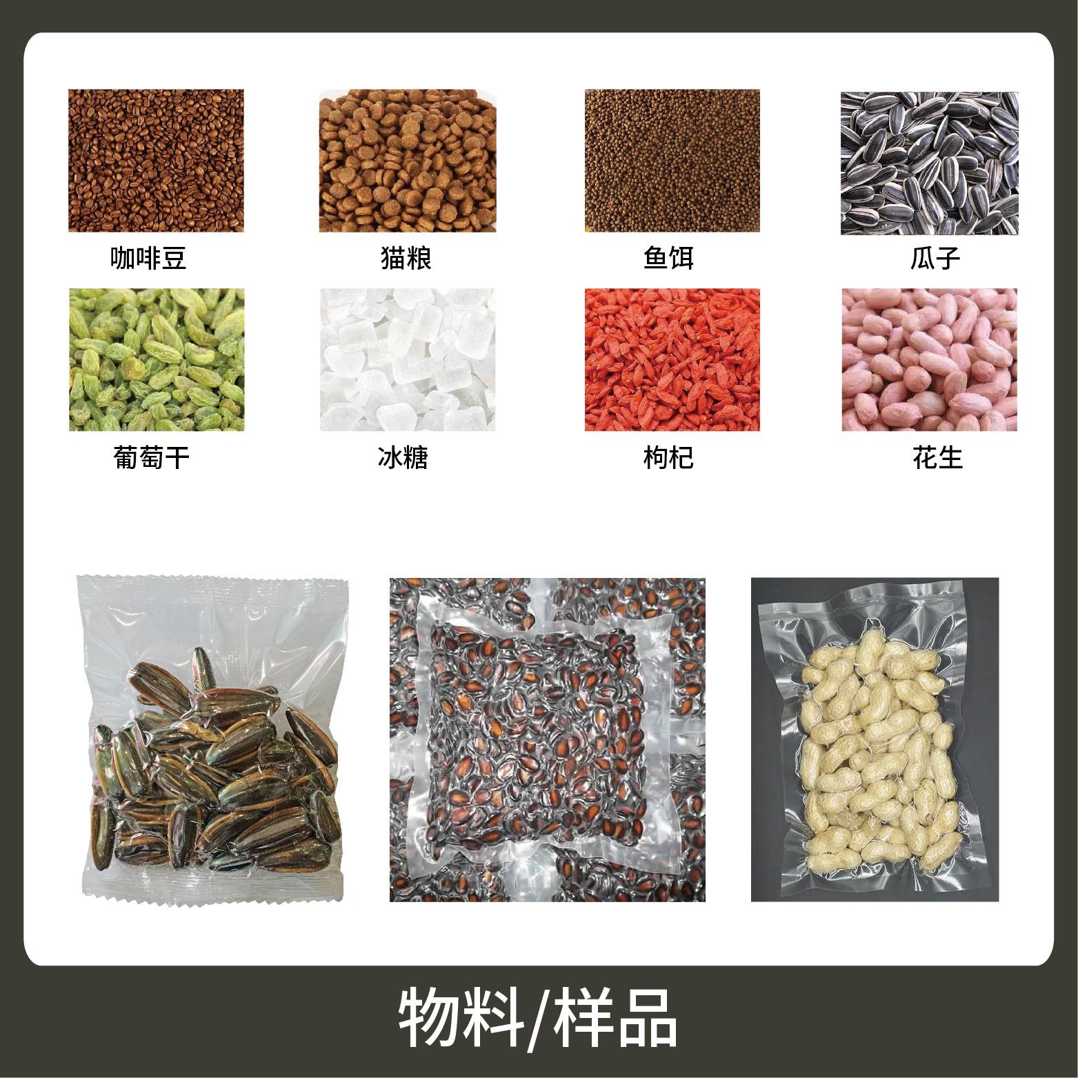 1、適用于食品行業中干果、炒貨、干菜等顆粒物品的真空計量包裝,防止食品的霉腐變質,保持食品的色香味,延長保質期。