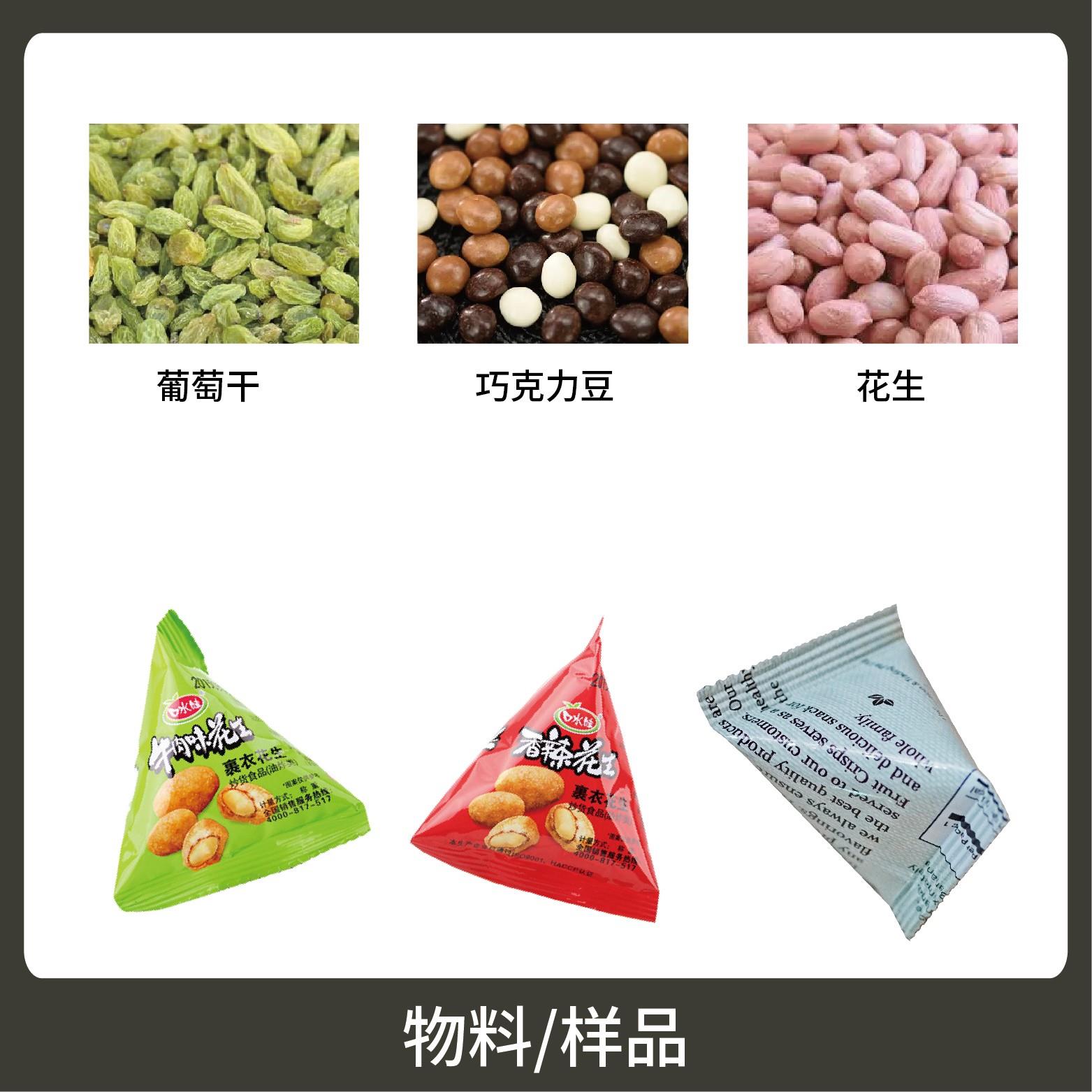 1、適用于食品、醫藥、化工、化妝品行業中顆粒物品的計量包裝,如:尖角脆、巧克力豆、qq糖等。