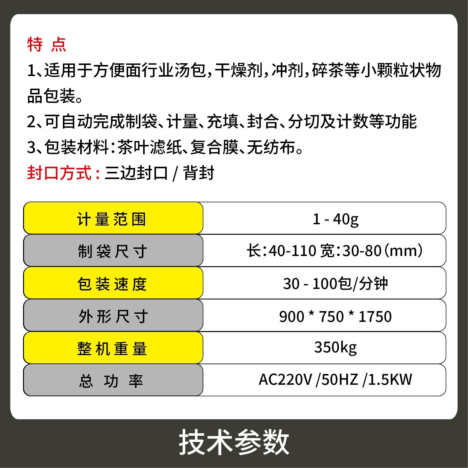 適用于方便面行業湯包,干燥劑,沖劑,碎茶等小顆粒狀物品包裝。