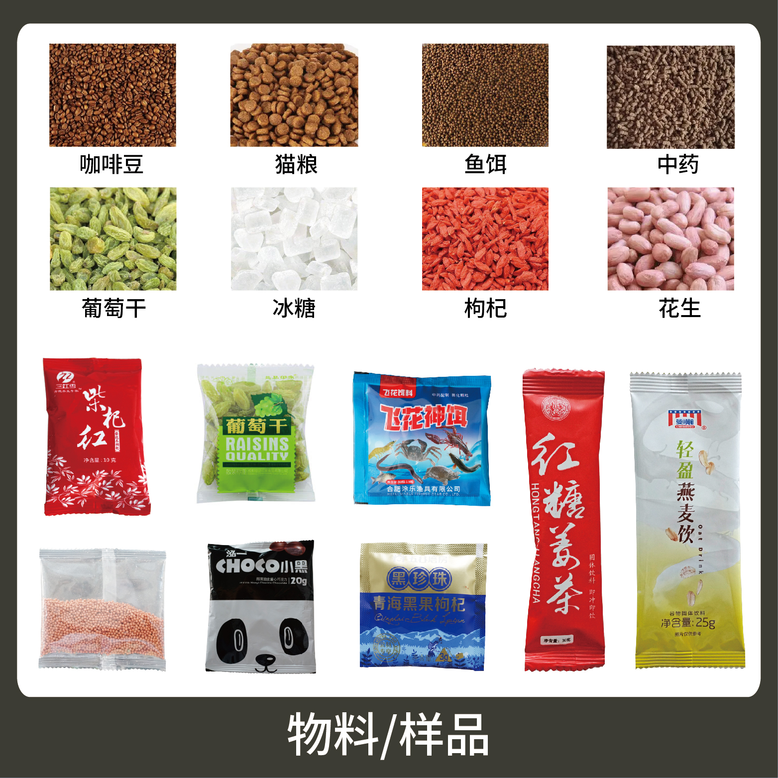 適用于食品、醫藥、化工、化妝品行業中顆粒物品的計量包裝,如:干果、果干、咖啡、中藥顆粒等。